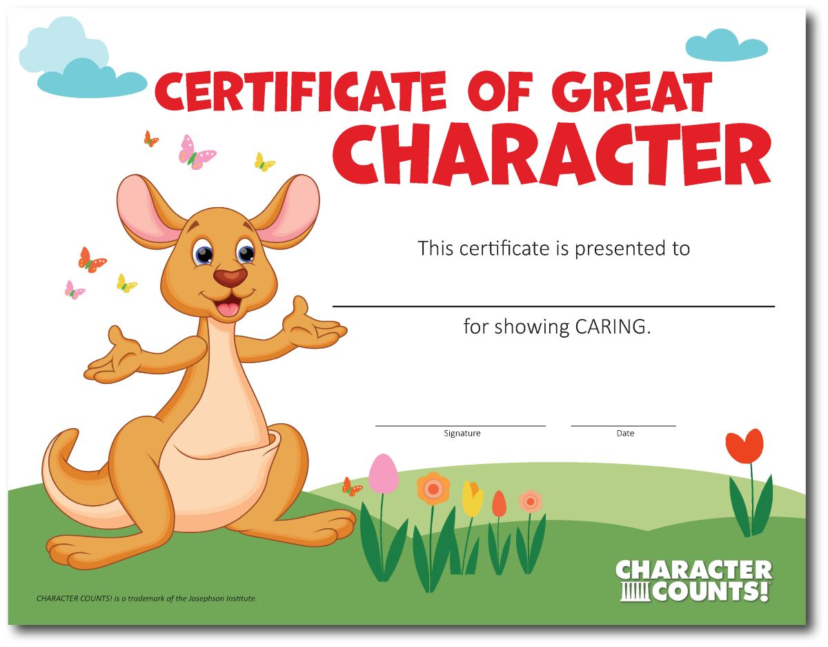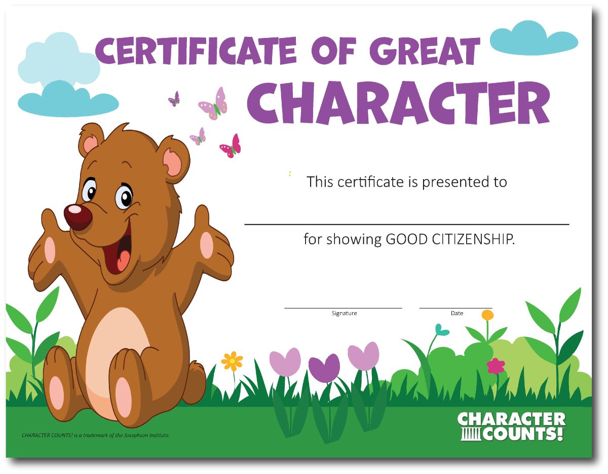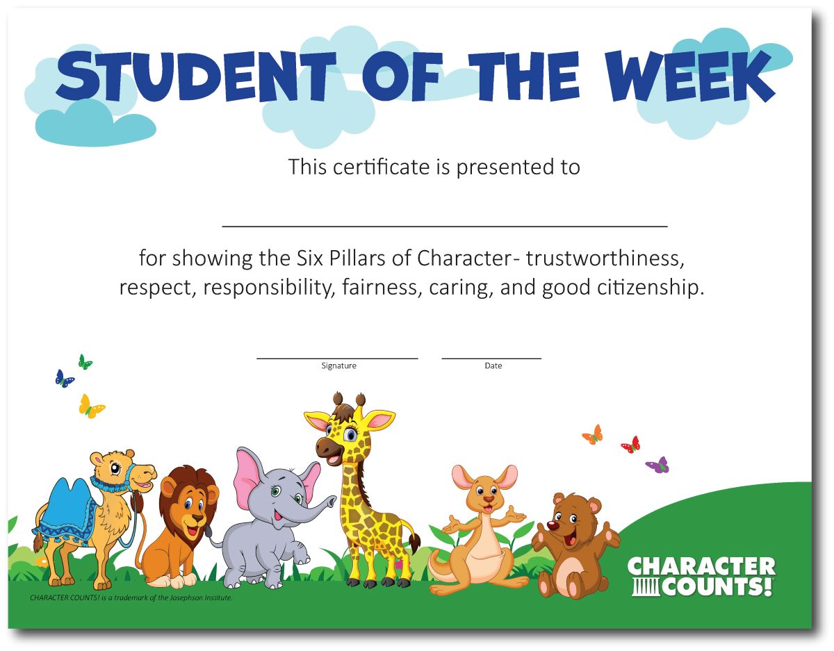 Shine a spotlight on students who model great character and kindness. The Animal Friends Digital Certificates design targets your younger students to help recognize the ways they bring the Six Pillars of Character to life.