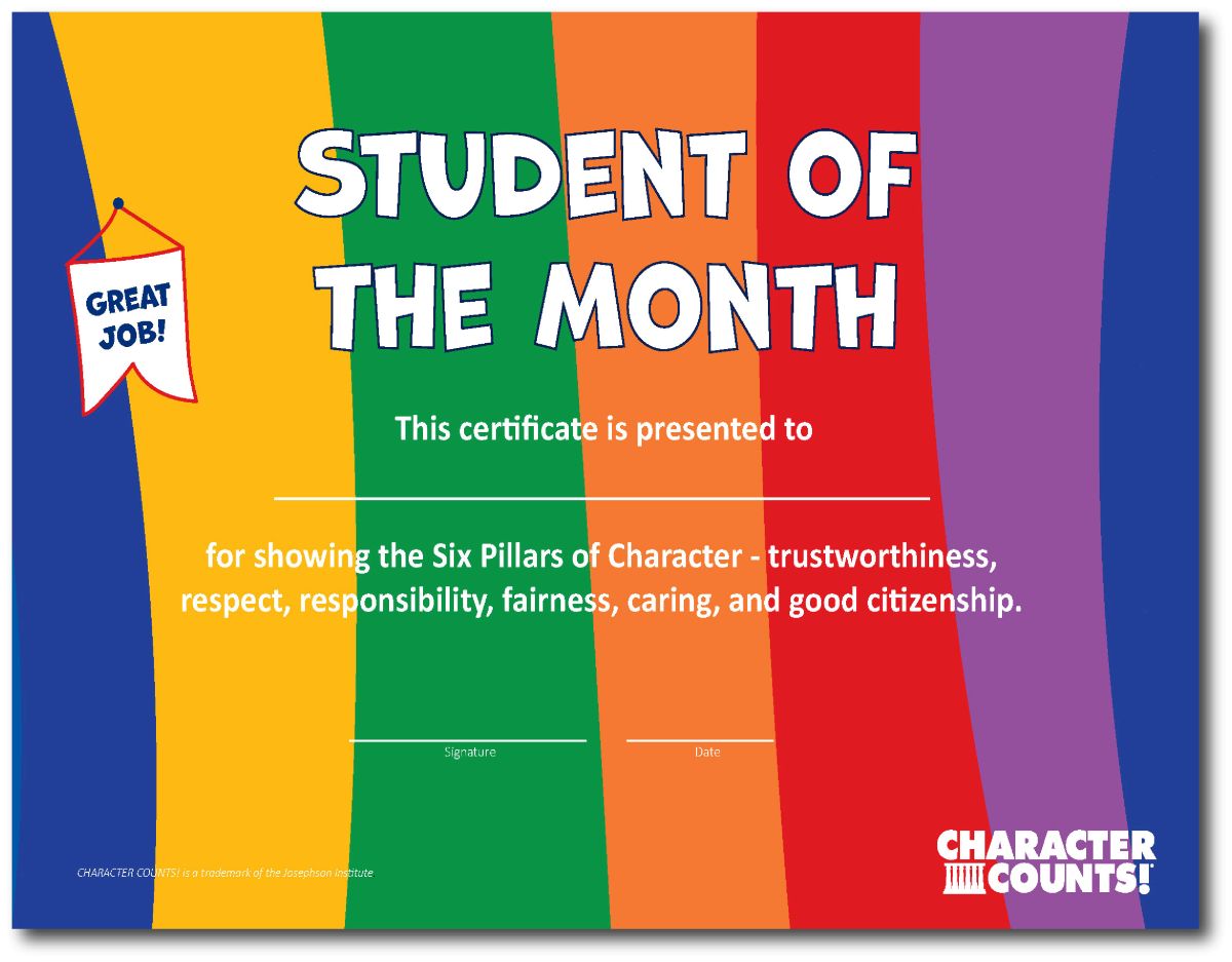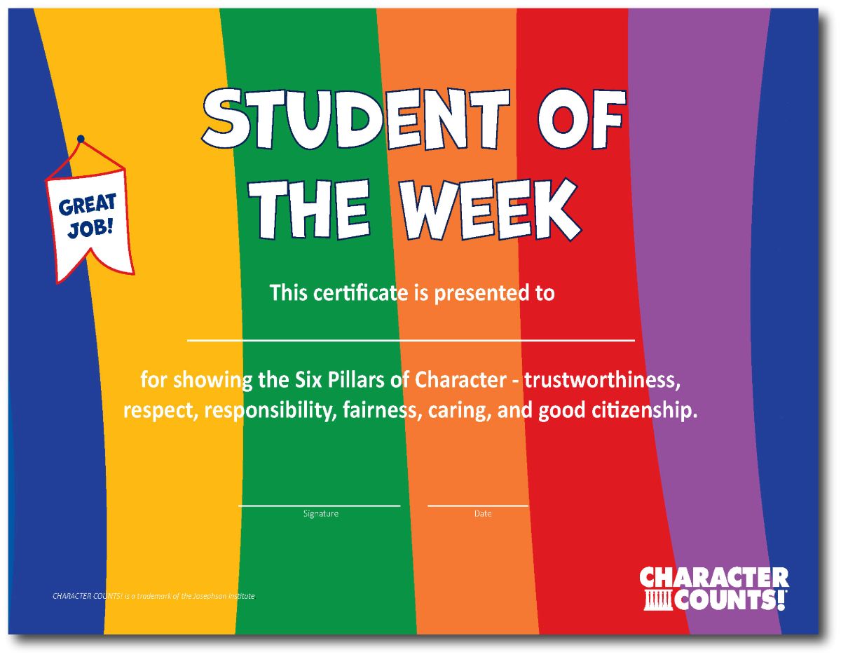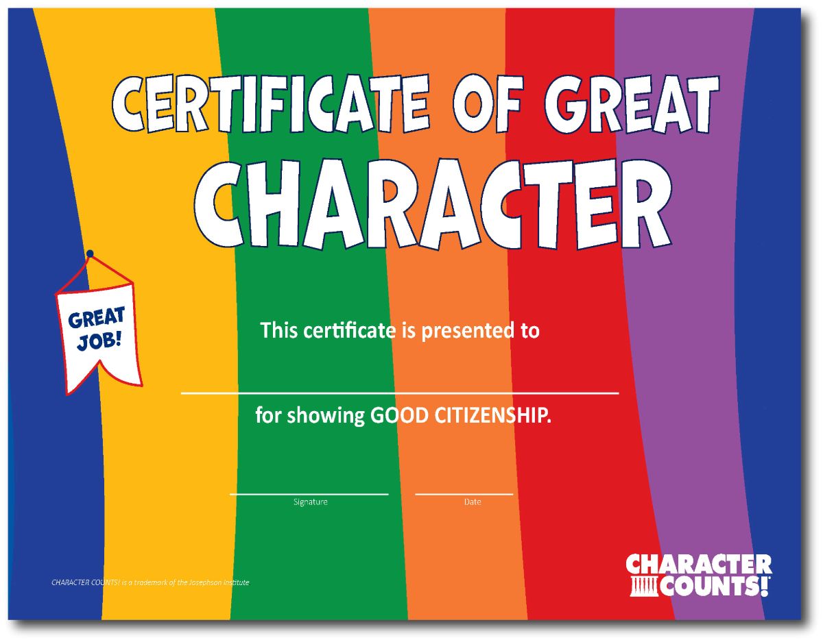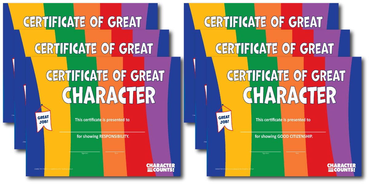 Support a culture of character in your school by rewarding students with the Colorful Digital Certificates for showing the Six Pillars of Character in action.